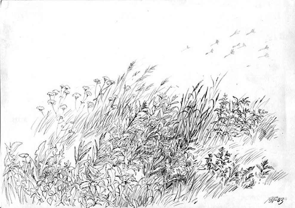 Рисование травы карандашом
