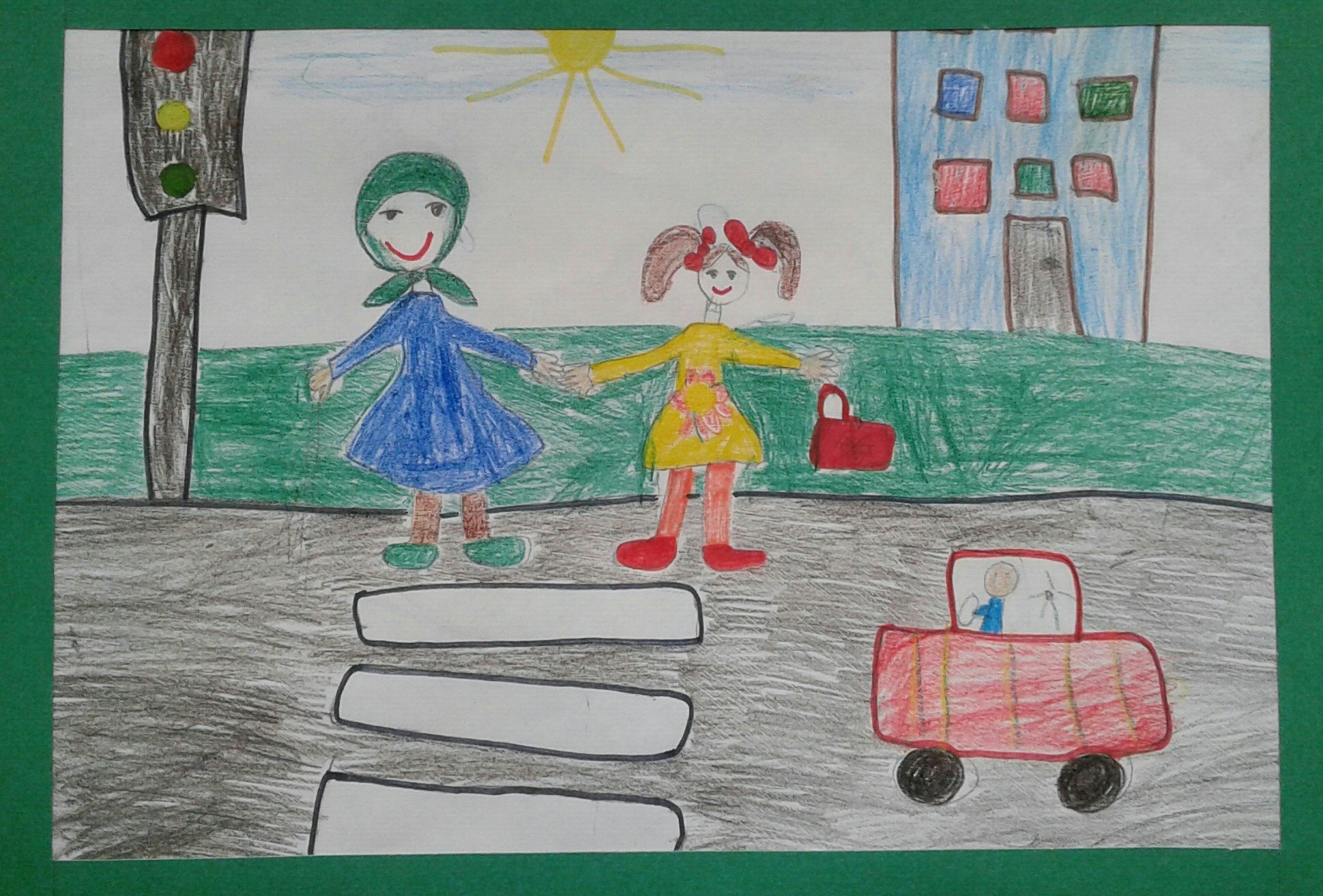 Мальчик переводит бабушку через дорогу рисунок