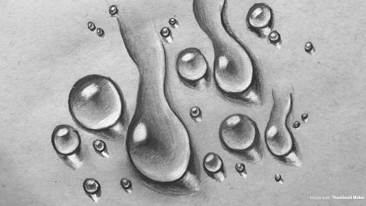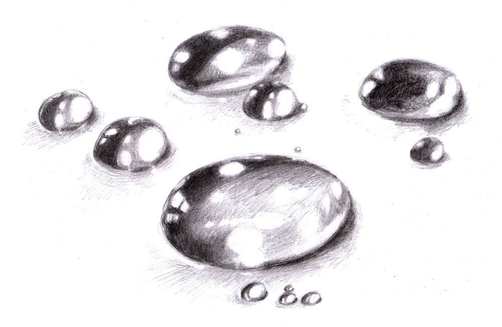 Капли воды рисунок простым карандашом