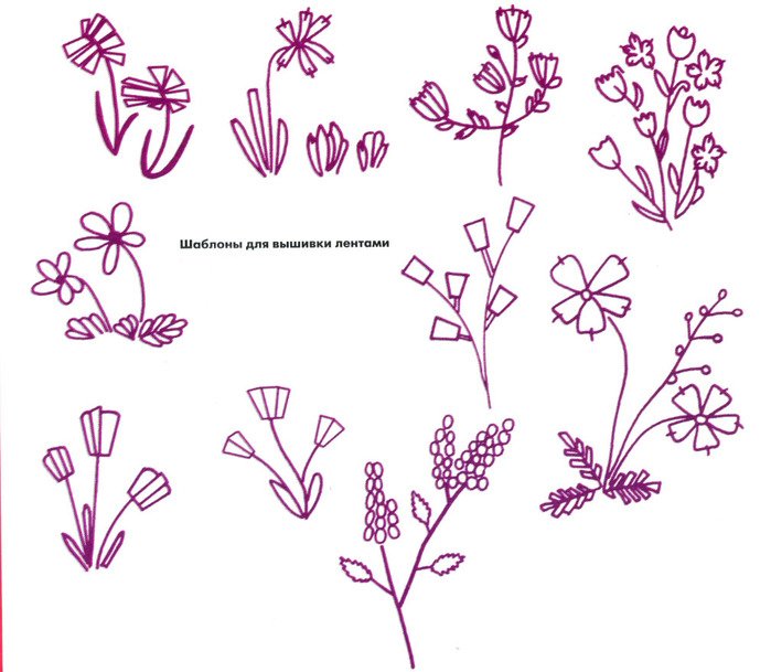 ![Эскизы для вышивания лентами]()