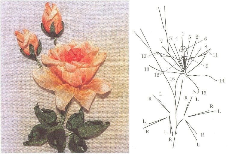 ![Вышивка лентами для начинающих пошагово схемы]()