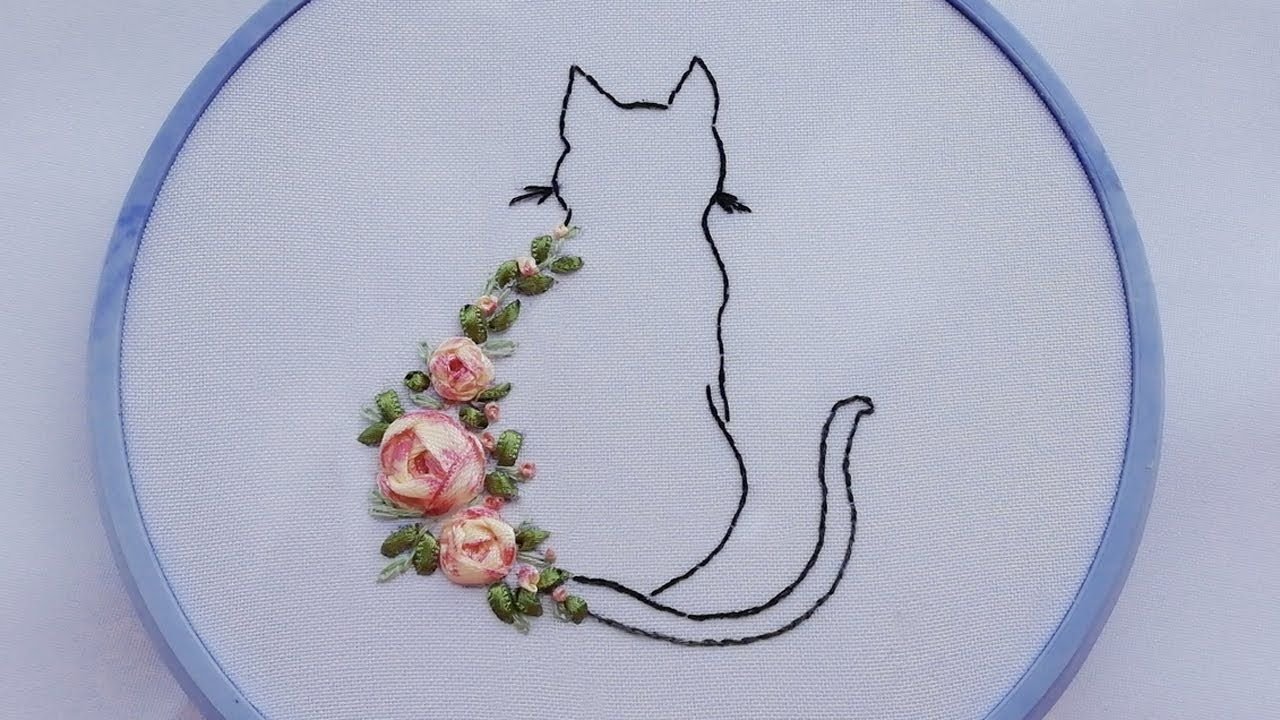 ![Кот вышитый лентами]()