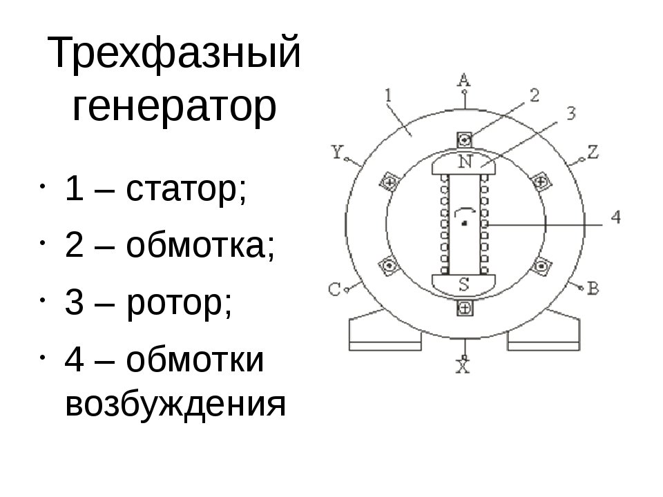 Схема устройства трехфазного генератора