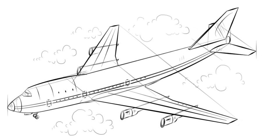 Как рисовать самолет сбоку