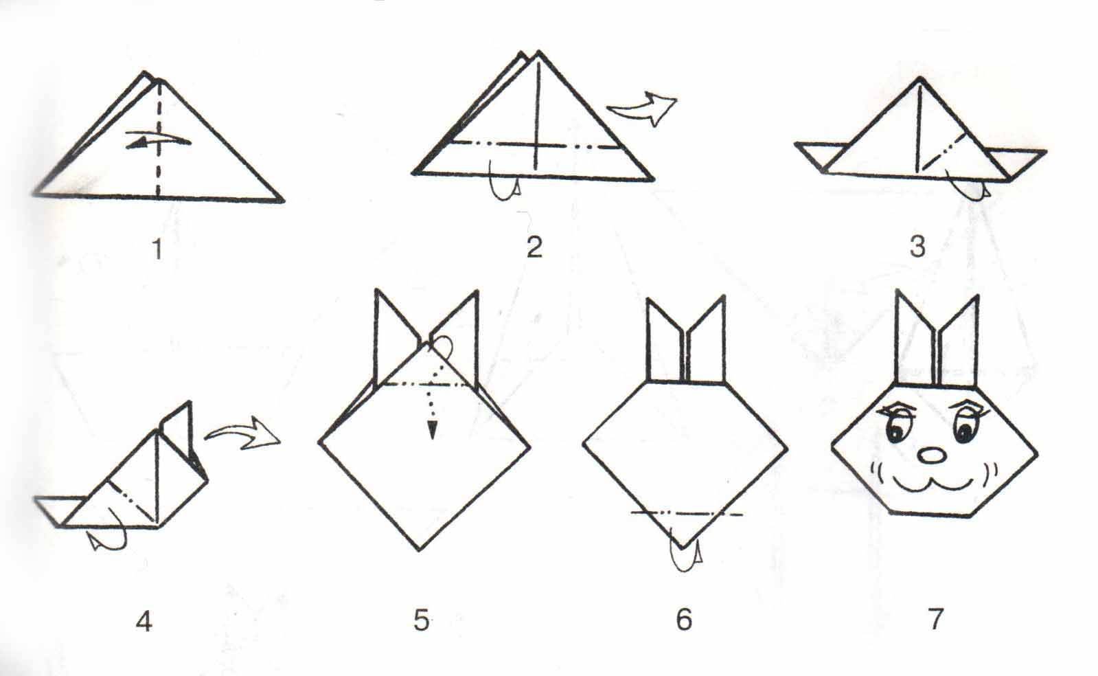 ![Оригами из бумаги кролик схема]()