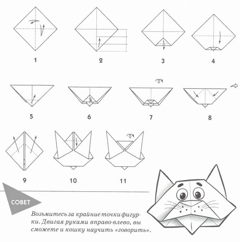 Оригами кошка пошаговая инструкция для детей