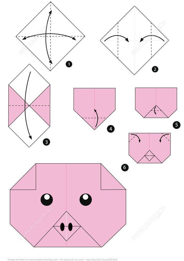 ![Оригами из бумаги поросенок схема]()