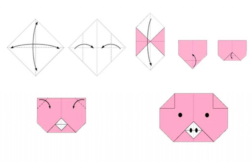 Оригами из бумаги поросенок схема