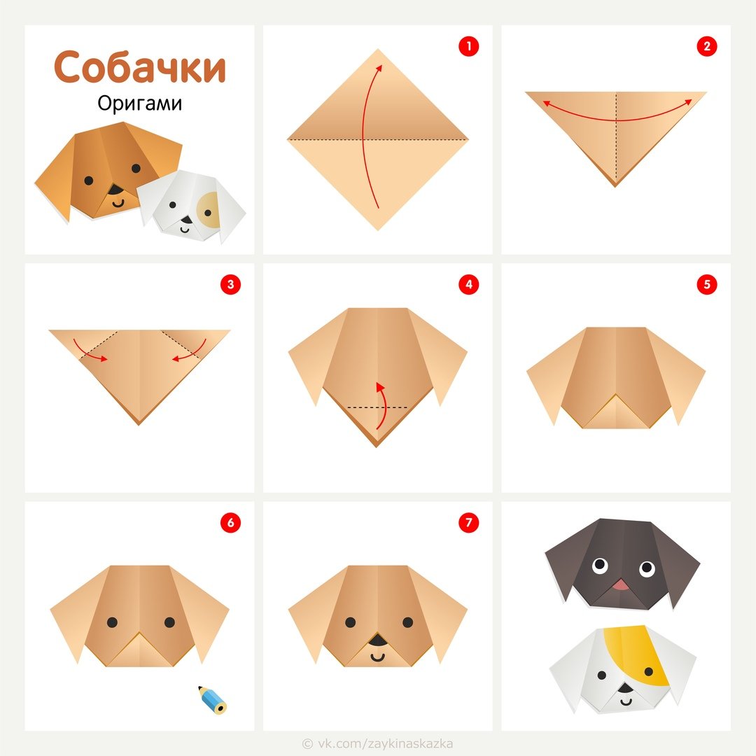 Оригами собака пошаговая инструкция для детей