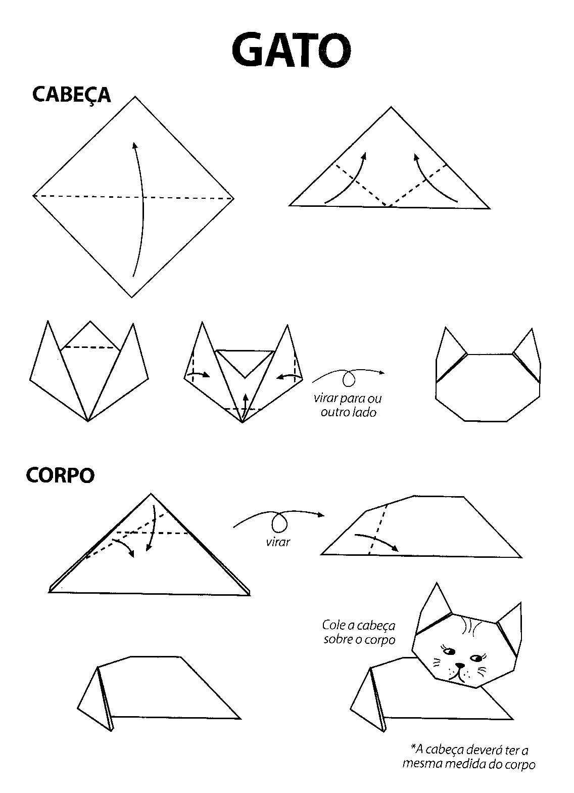 ![Оригами кошка схема для детей]()