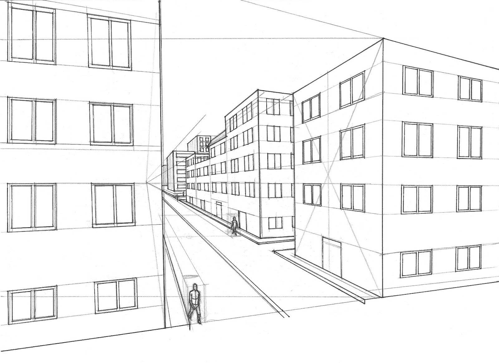 ![Двухточечная перспектива город]()