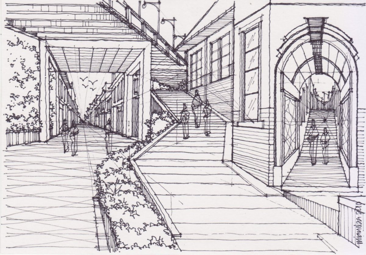 ![Зарисовка города линейная перспектива]()