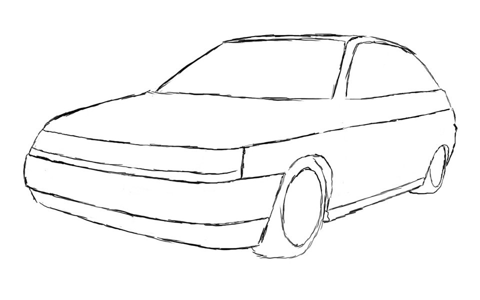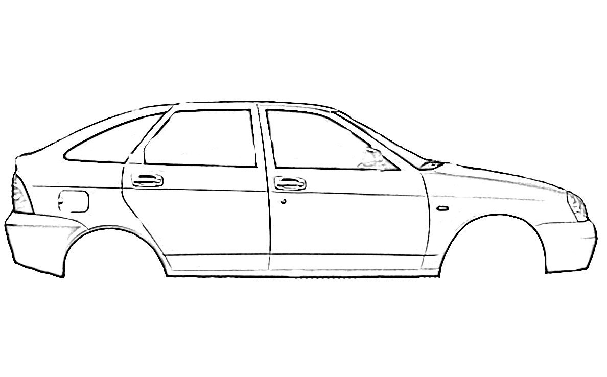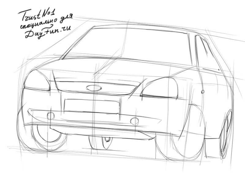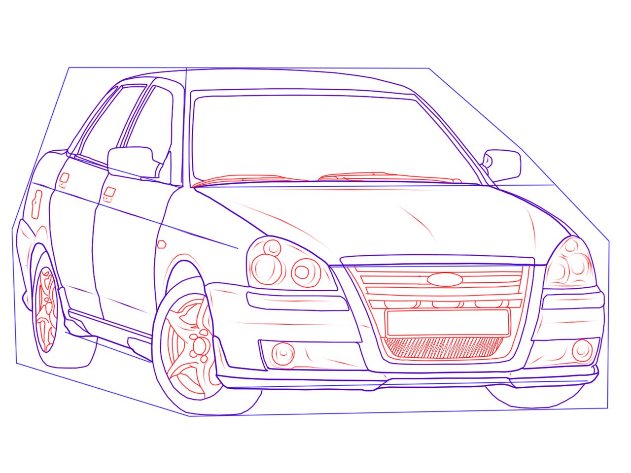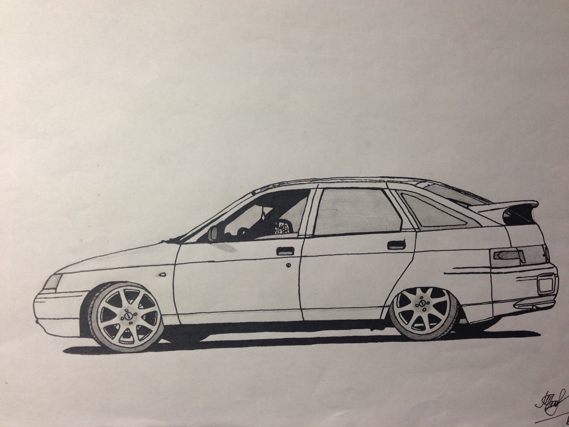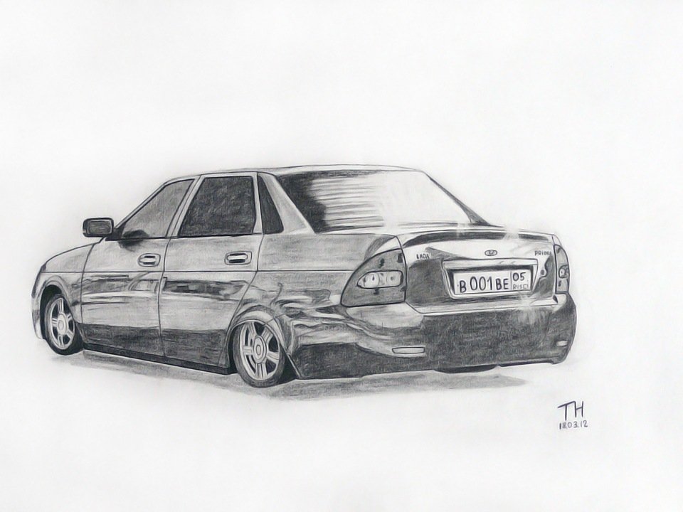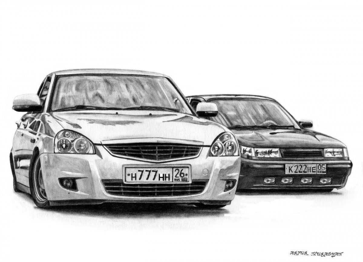 ![Машины рисунок карандашом сбоку Лада Приора]()
