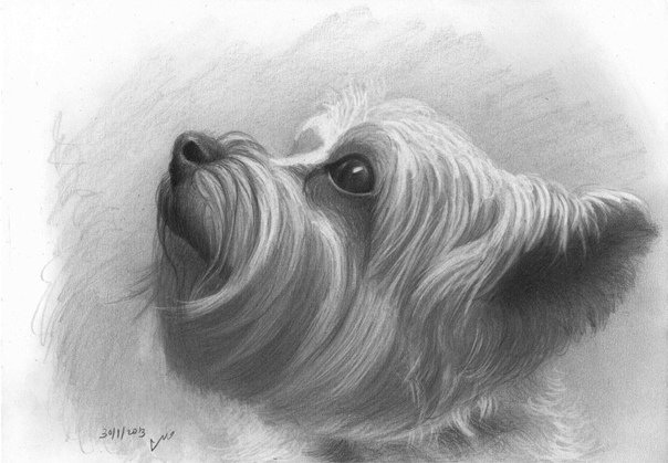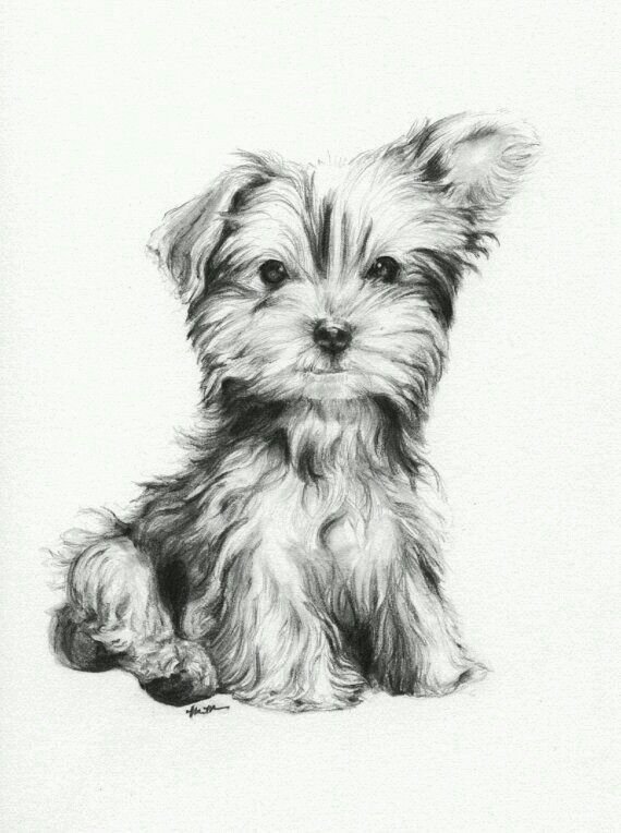 ![Йоркширский терьер рисунок карандашом]()