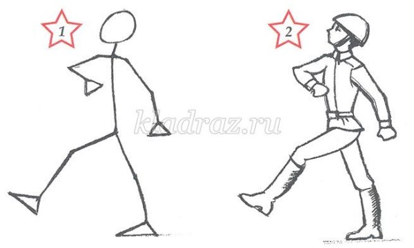 Поэтапное рисование солдата в движении