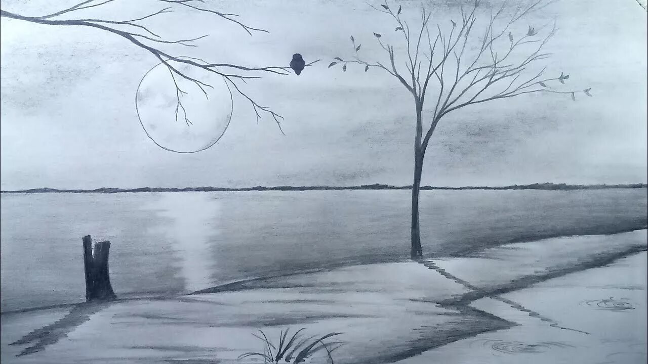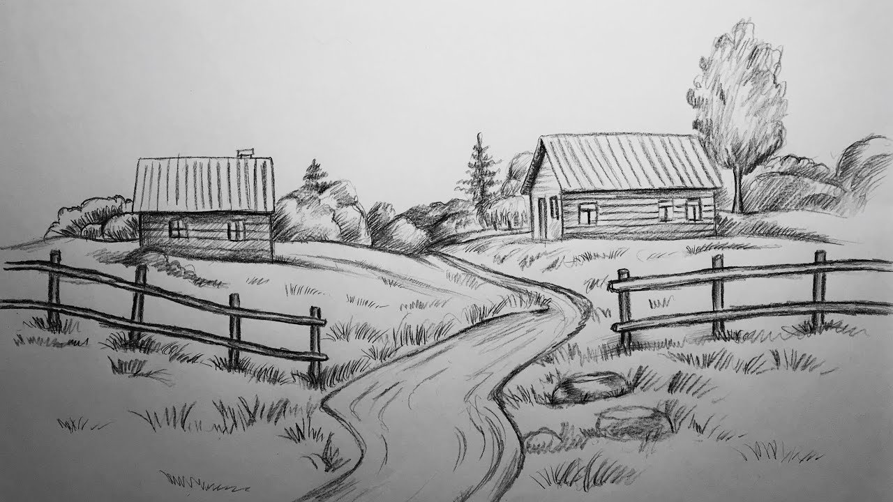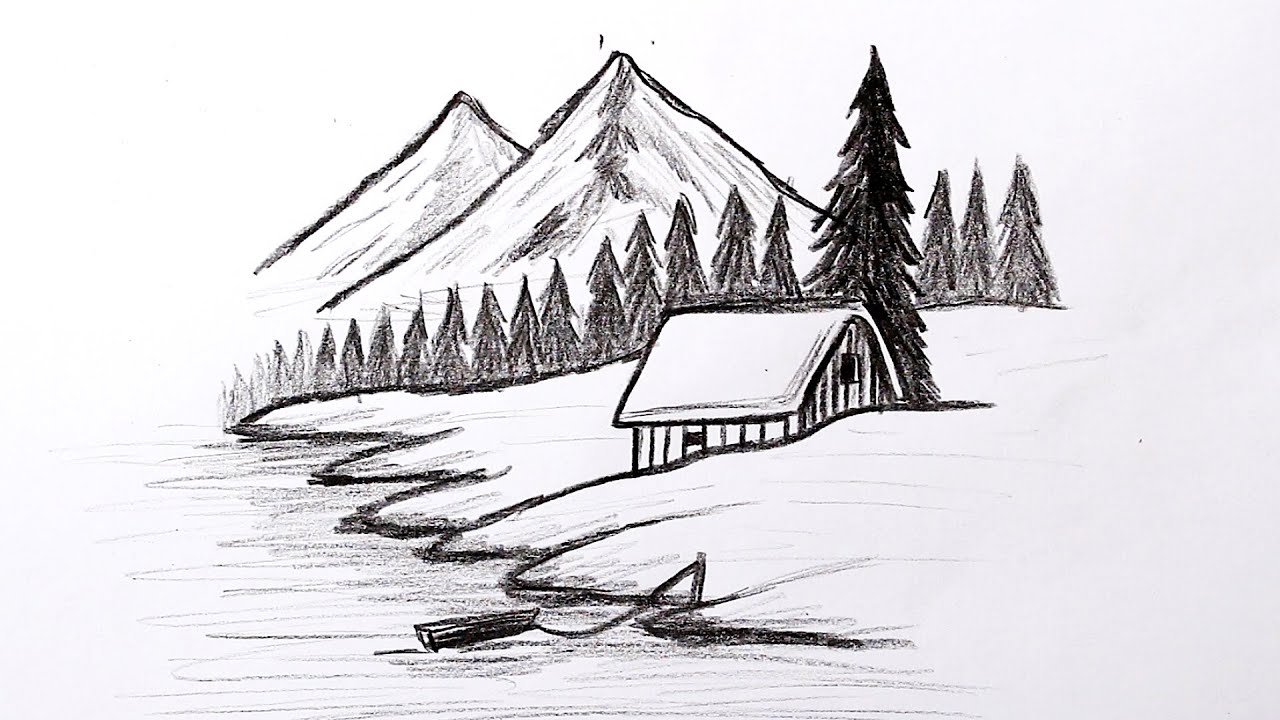Пейзаж карандашом легкий