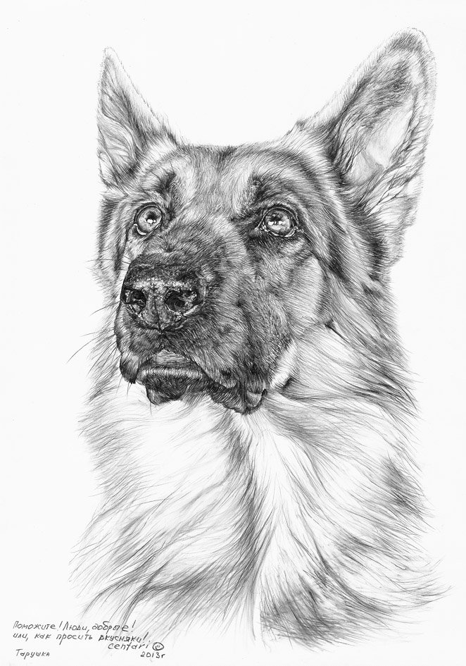 Портрет овчарки карандашом