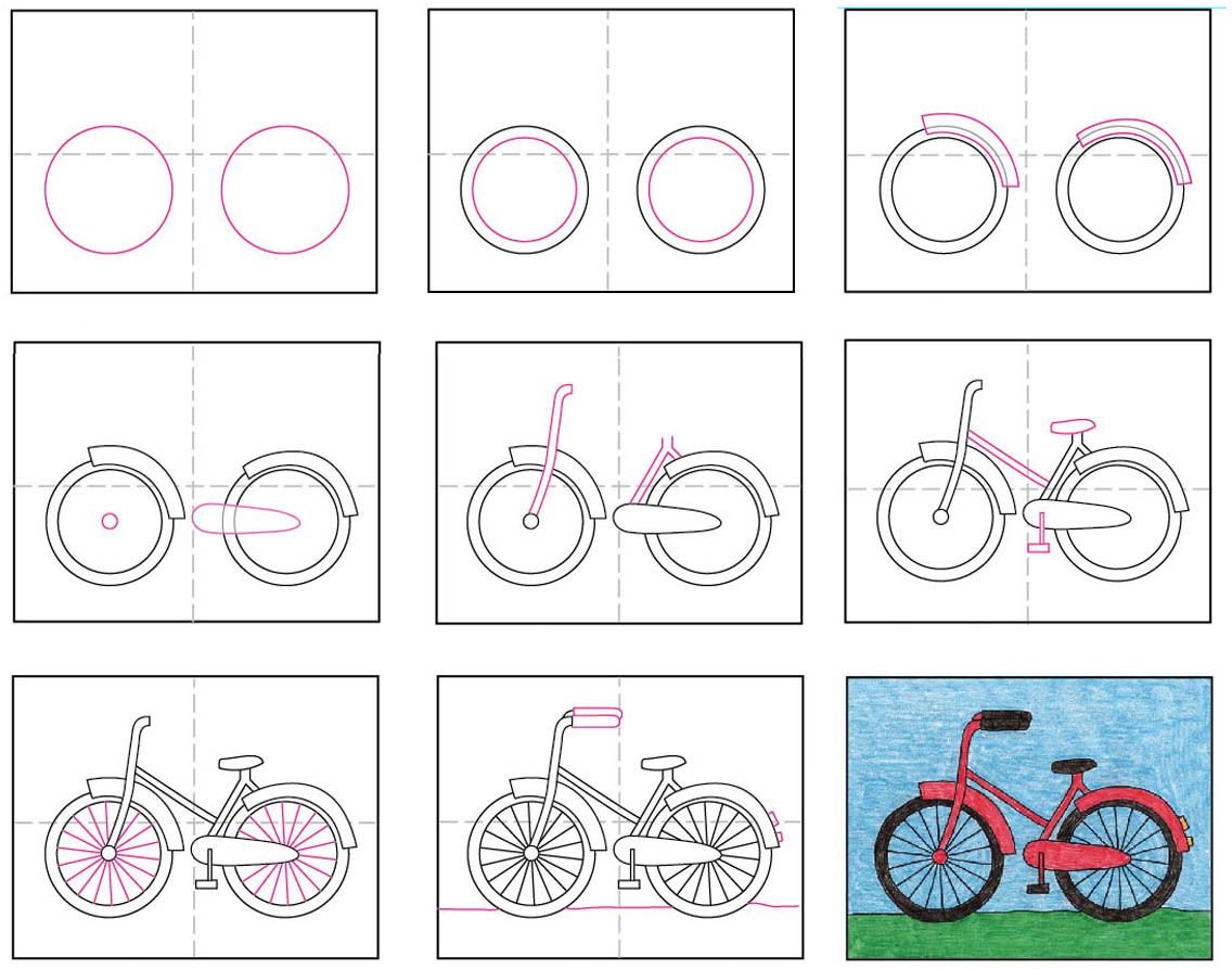 Велосипед срисовать цветные