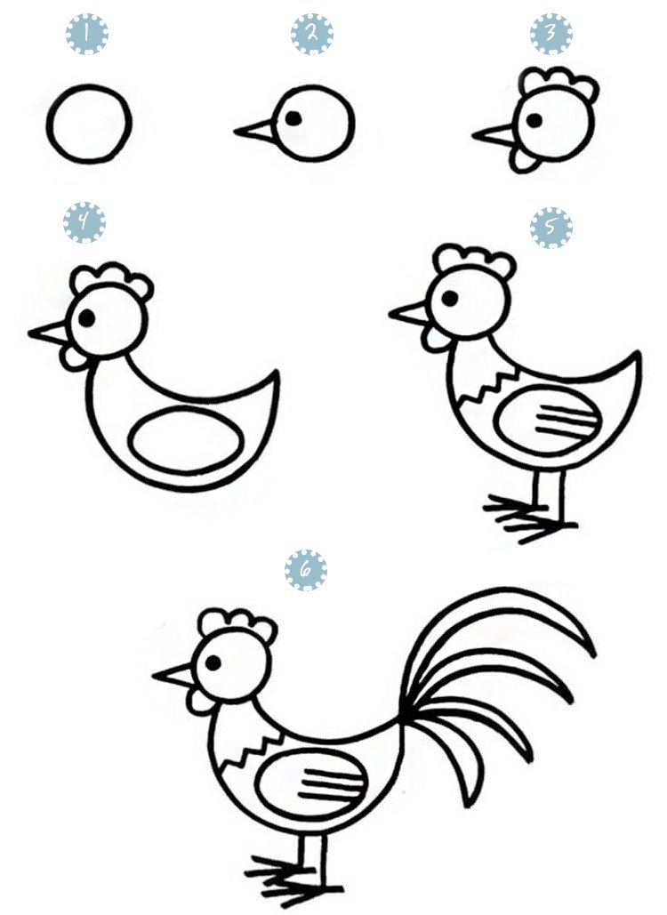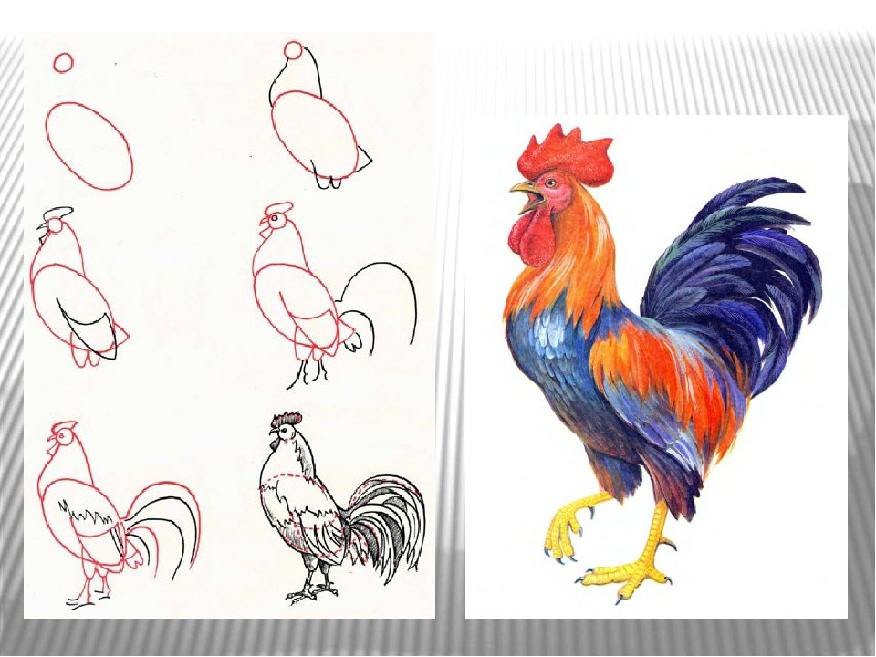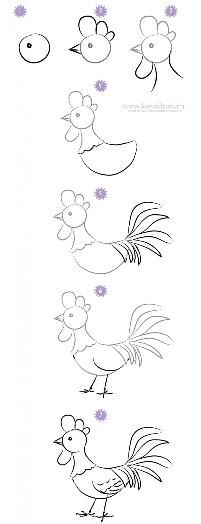 Как нарисовать петуха карандашом поэтапно для детей 5 лет