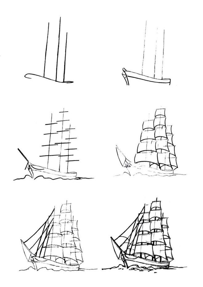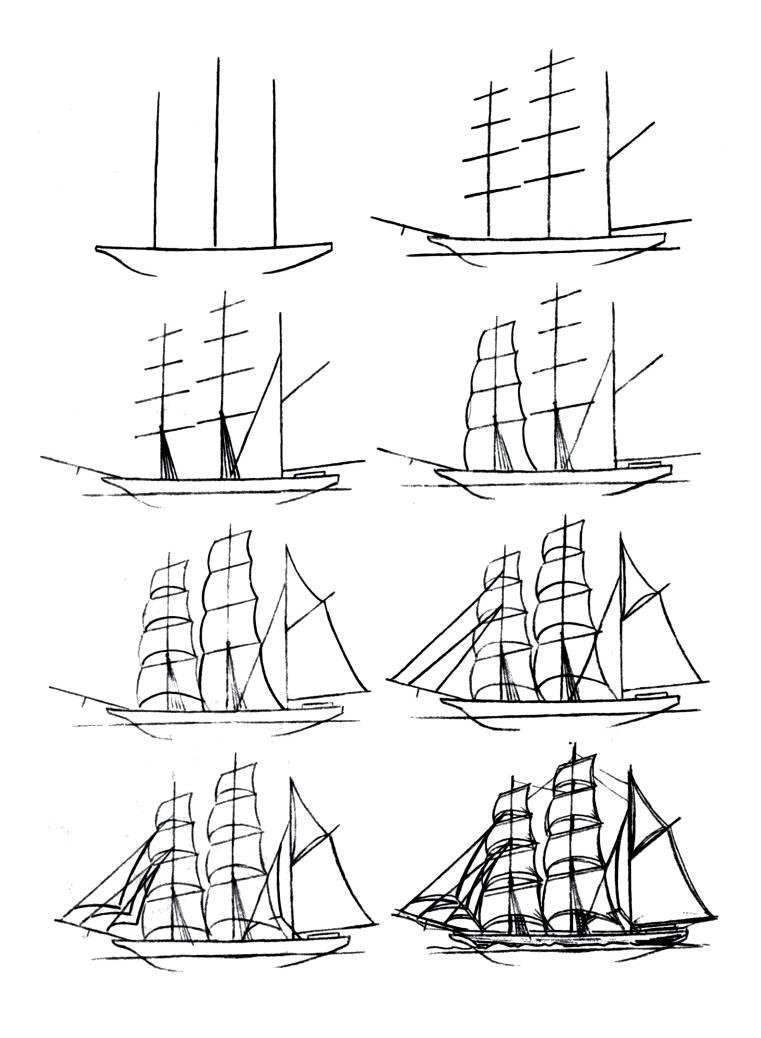 Парусник рисунок карандашом