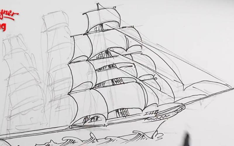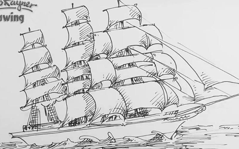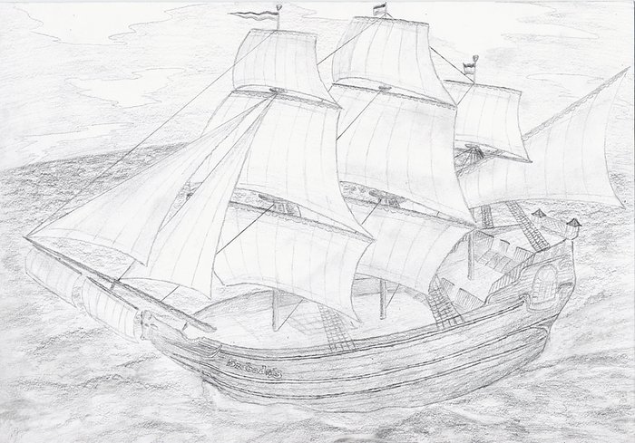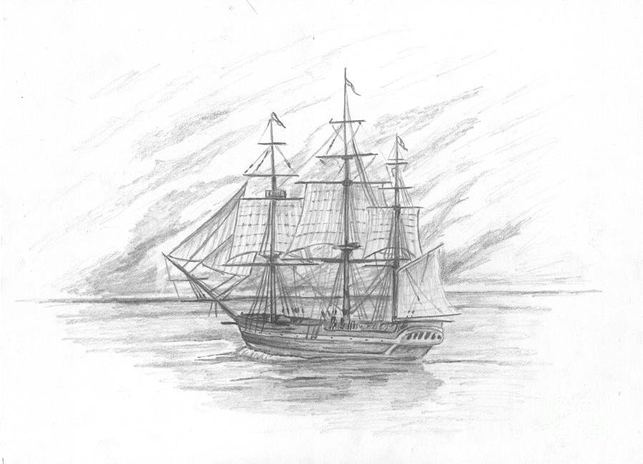 Парусный корабль карандашом