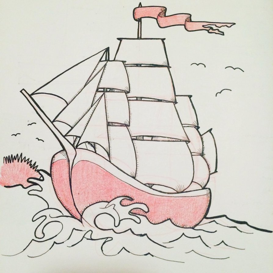 Корабль парусник карандашом