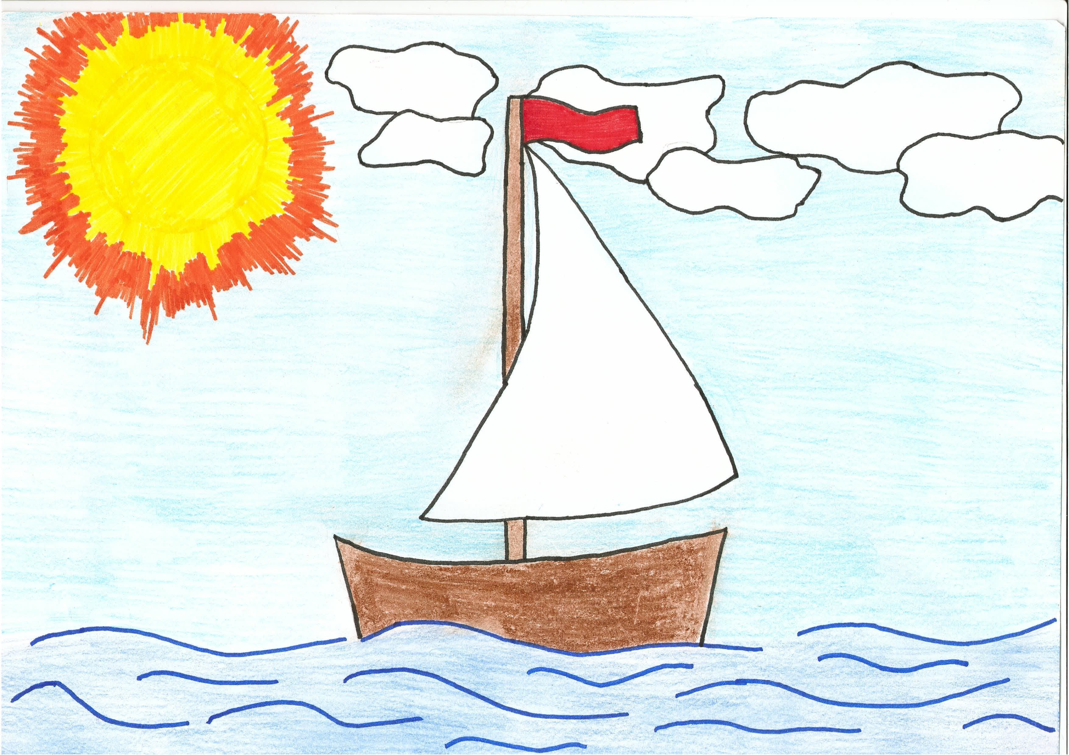 Рисунок кораблика с парусами для детей
