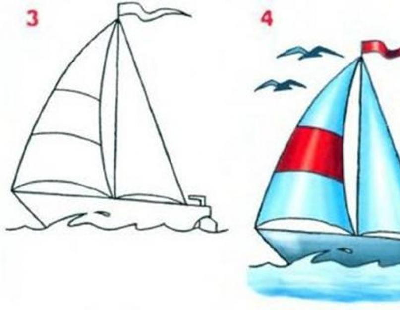 Поэтапное рисование кораблика