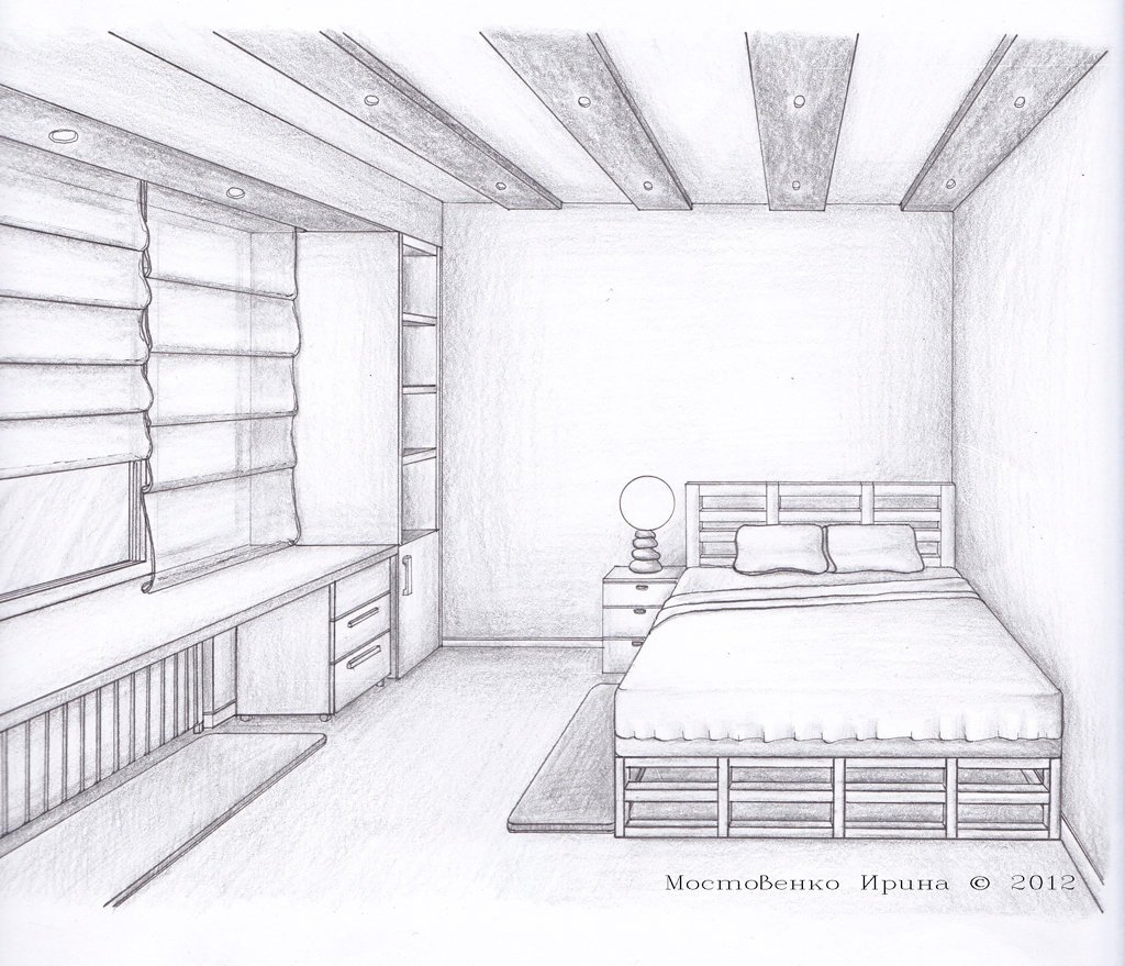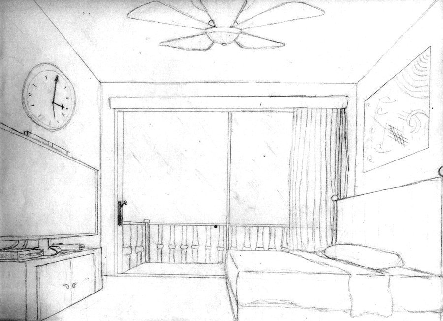 Рисунок комнаты карандашом