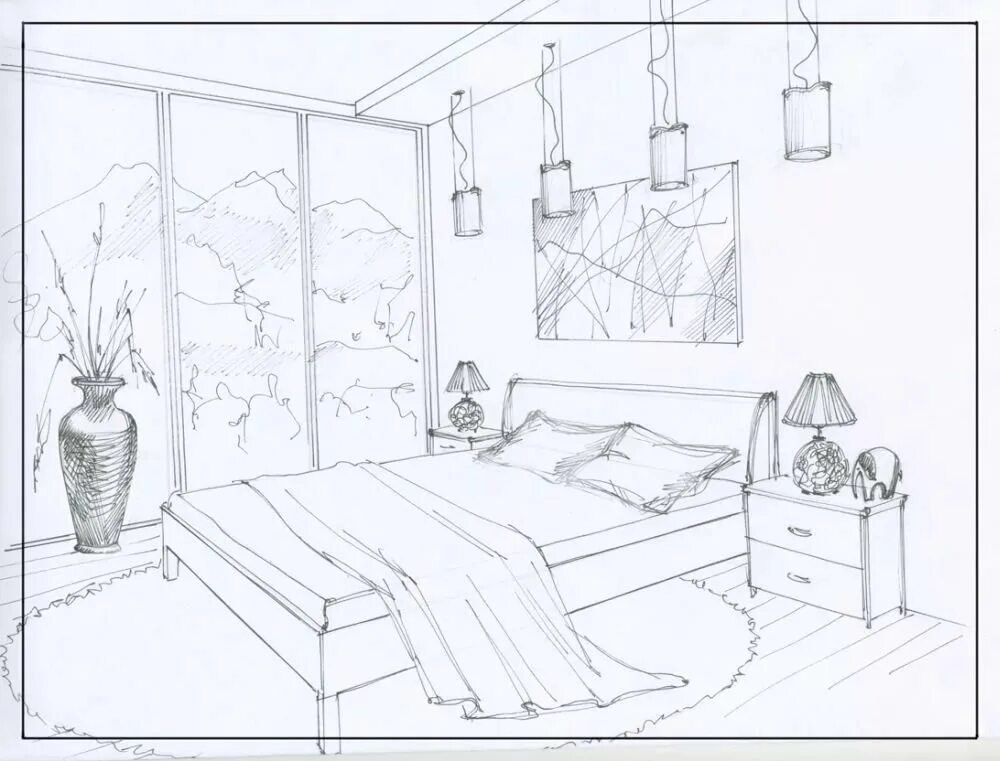 Интерьер карандашом для начинающих