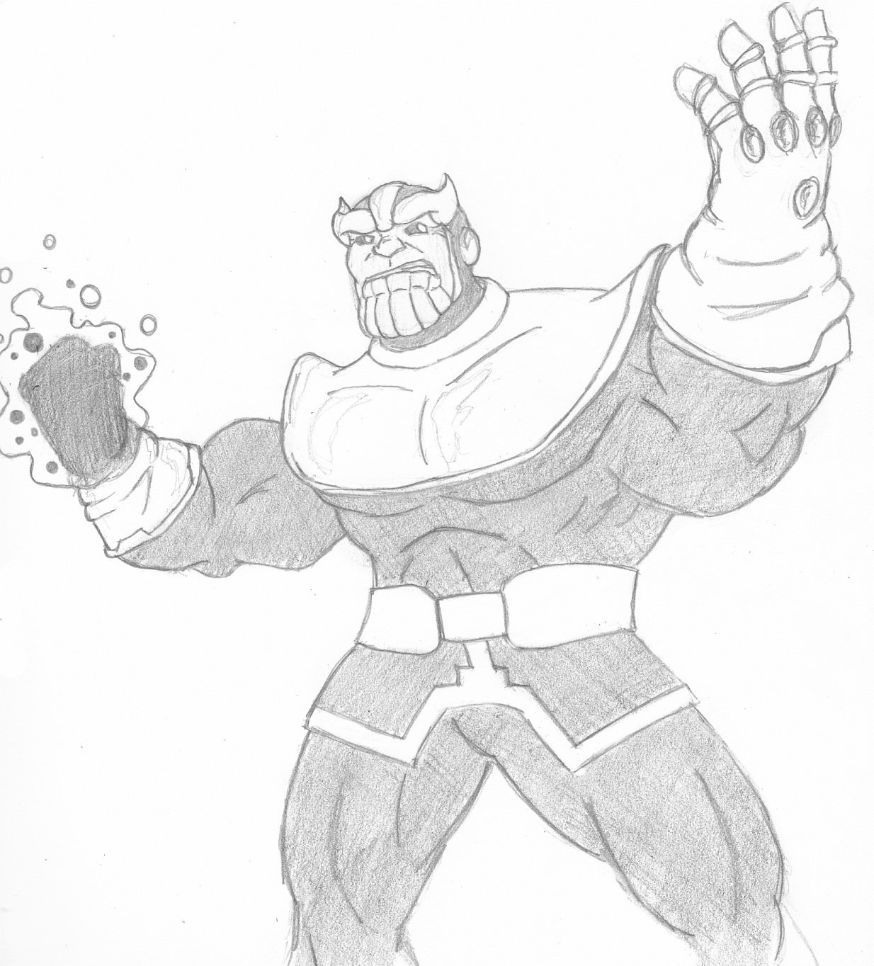 Танос — это мощный суперзлодей из вселенной Marvel, ставший популярным после выхода фильма "Мстители: Война бесконечности". Рисунок Таноса может быть выполнен в разных стилях и техниках, но даже простой рисунок способен передать его устрашающую и харизматичную внешность. Можно нарисовать Таноса в полный рост, с его характерными фиолетовыми цветами кожи и черной броней. Или же создать портрет, подчеркнув его красные глаза и заостренный подбородок. В любом случае, рисунок Таноса будет ярким и запоминающимся элементом в коллекции любого поклонника комиксов или фильмов о Мстителях.