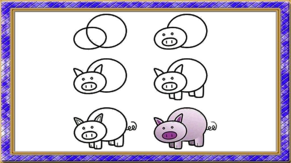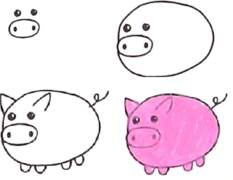Поэтапный рисунок поросенка