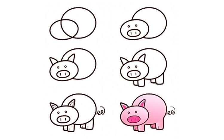Поэтапное рисование свиньи
