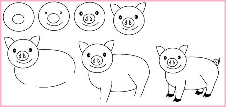 Поросенок рисунок карандашом для детей легкие