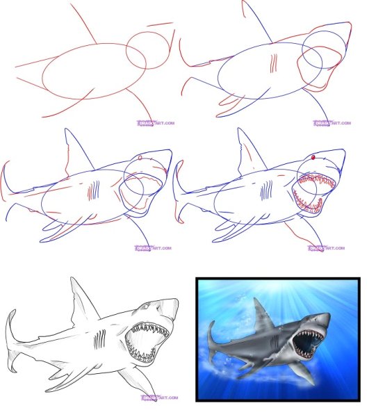 Как нарисовать акулу поэтапно