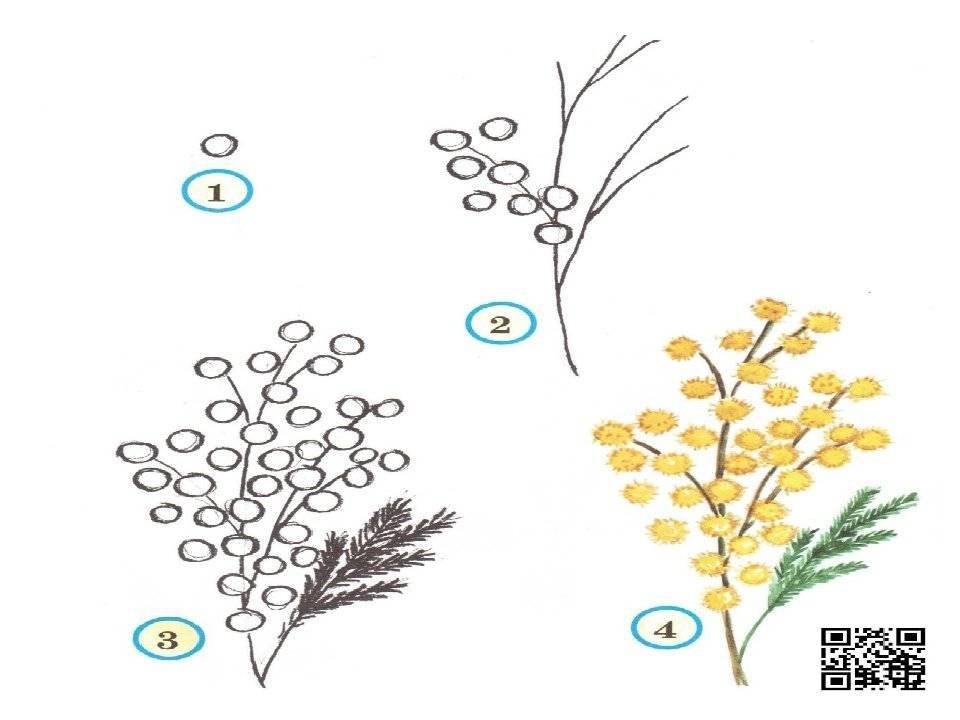 ![Рисование поэтапное мимозы для детей подготовительной группы]()