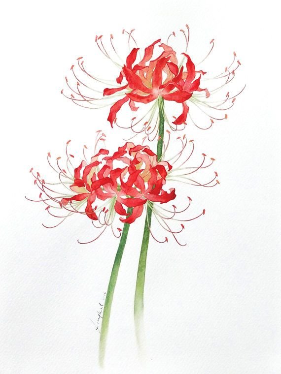 ![Хиганбана ликорис акварель]()