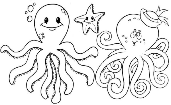 Осьминожки раскраска