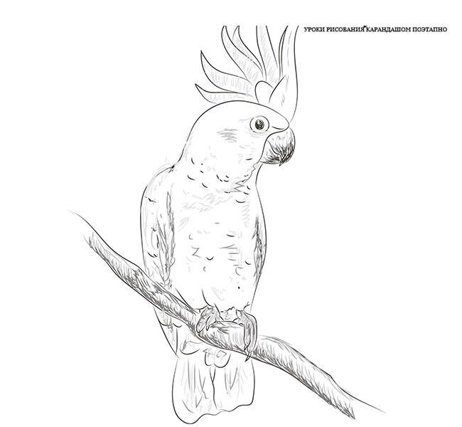 Поэтапный рисунок карандашом попугай