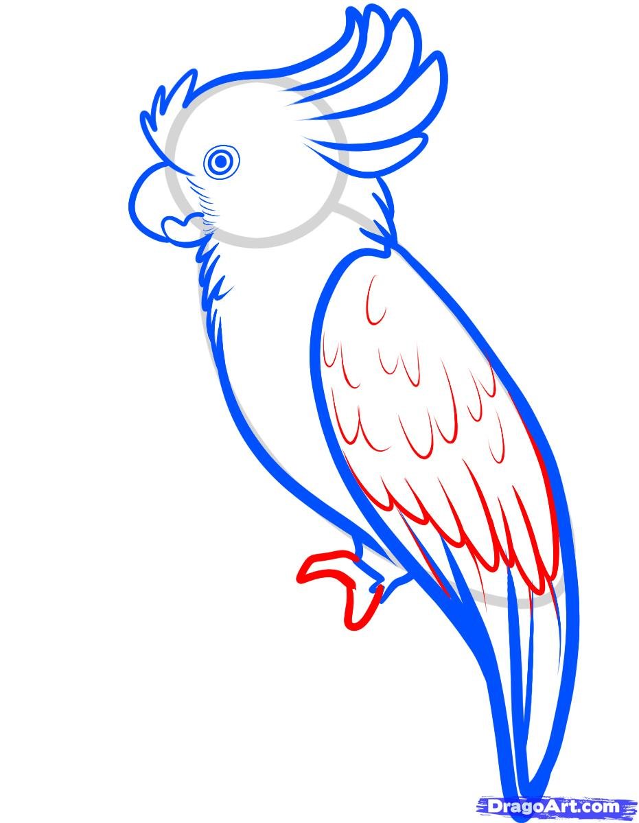 Как нарисовать попугая корелла поэтапно