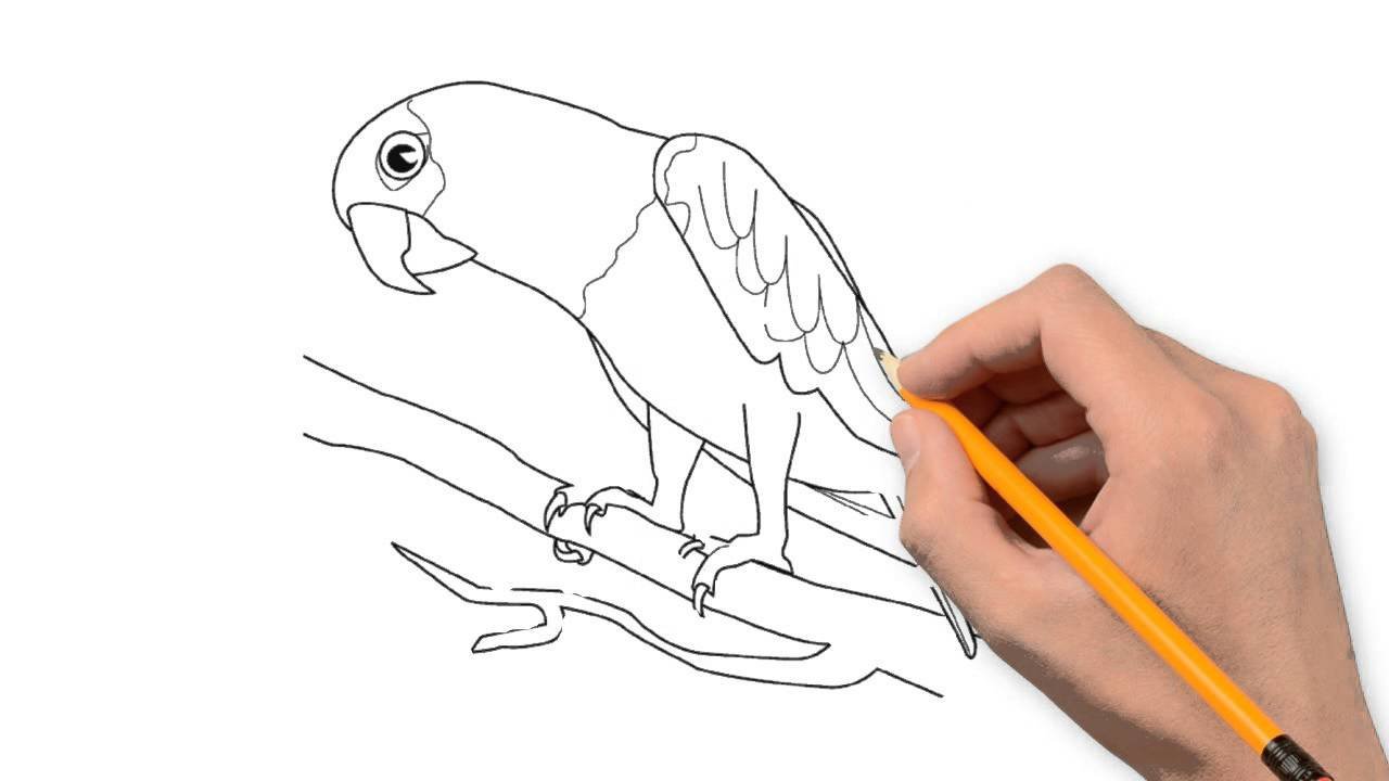 ![Попугай карандашом для срисовки]()