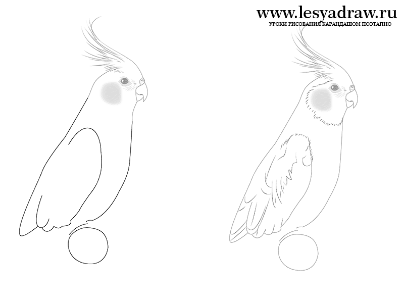 ![Как нарисовать попугая корелла поэтапно]()