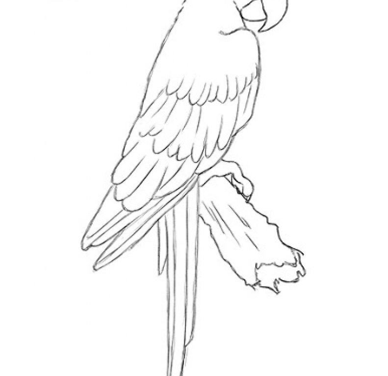 Попугай карандашом для срисовки