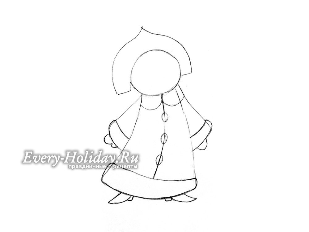 Снегурочка - это прекрасный рисунок для детей, который можно научиться рисовать при помощи простых пошаговых инструкций. Для начала, возьмите лист бумаги и карандаш. Начинайте с головы Снегурочки, нарисовав овальную форму. Затем добавьте волосы, выпуклые глаза и носик. Постепенно продолжайте добавлять детали, такие как улыбку, щеки и ушки. Затем переходите к телу, нарисуйте пышное платье и руки с перчатками. Не забудьте про обувь и шапку. В конце добавьте длинные пушистые косички и контурные черты, чтобы придать рисунку больше объема. И вот ваша простая пошаговая Снегурочка готова! Этот рисунок подойдет для самых маленьких художников и поможет им развить свои творческие навыки.
