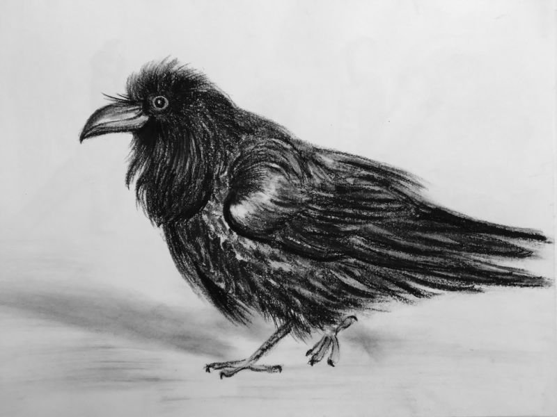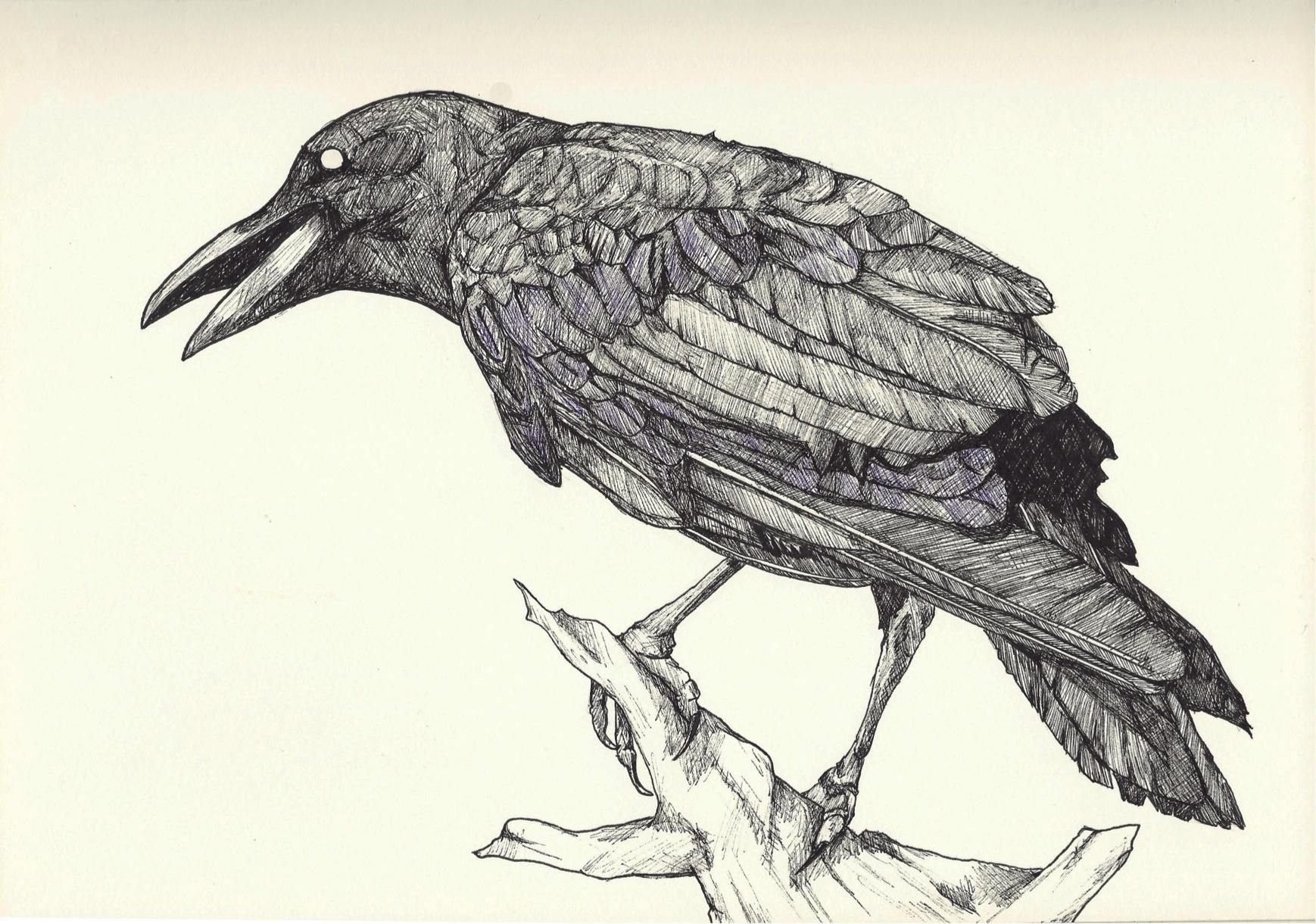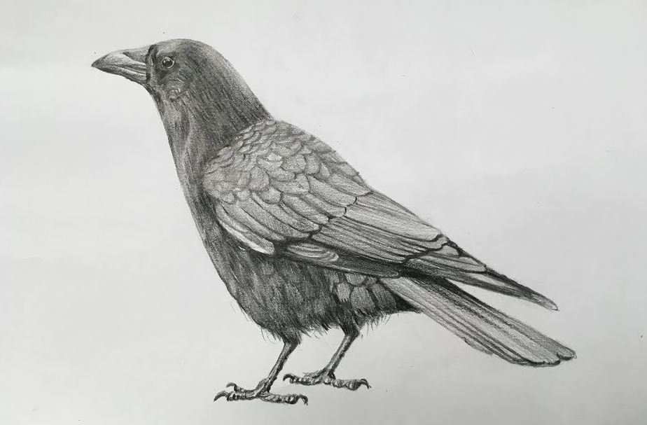 ![Рисунок вороны карандашом]()