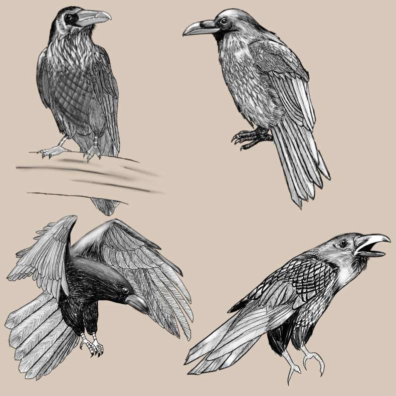 ![Ворон скетч]()