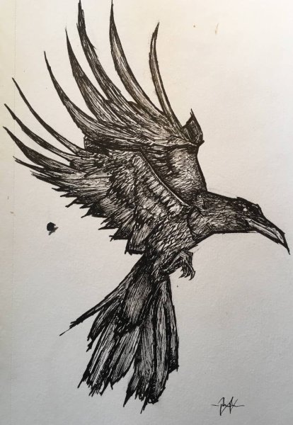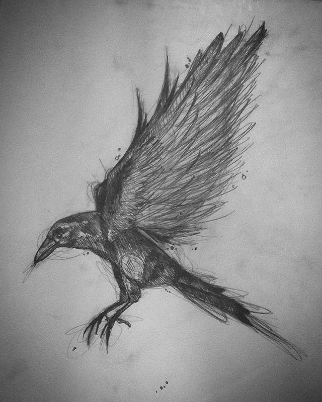 ![Ворон в полете эскиз]()