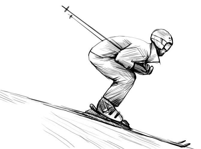 Лыжник рисунок карандашом
