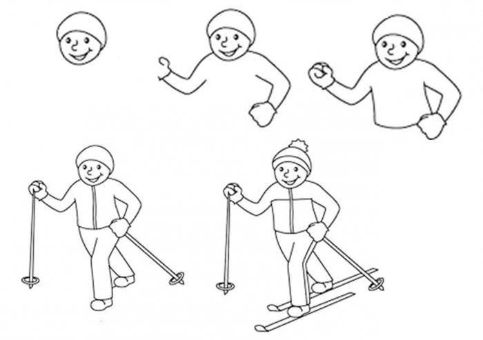 Нарисовать лыжника