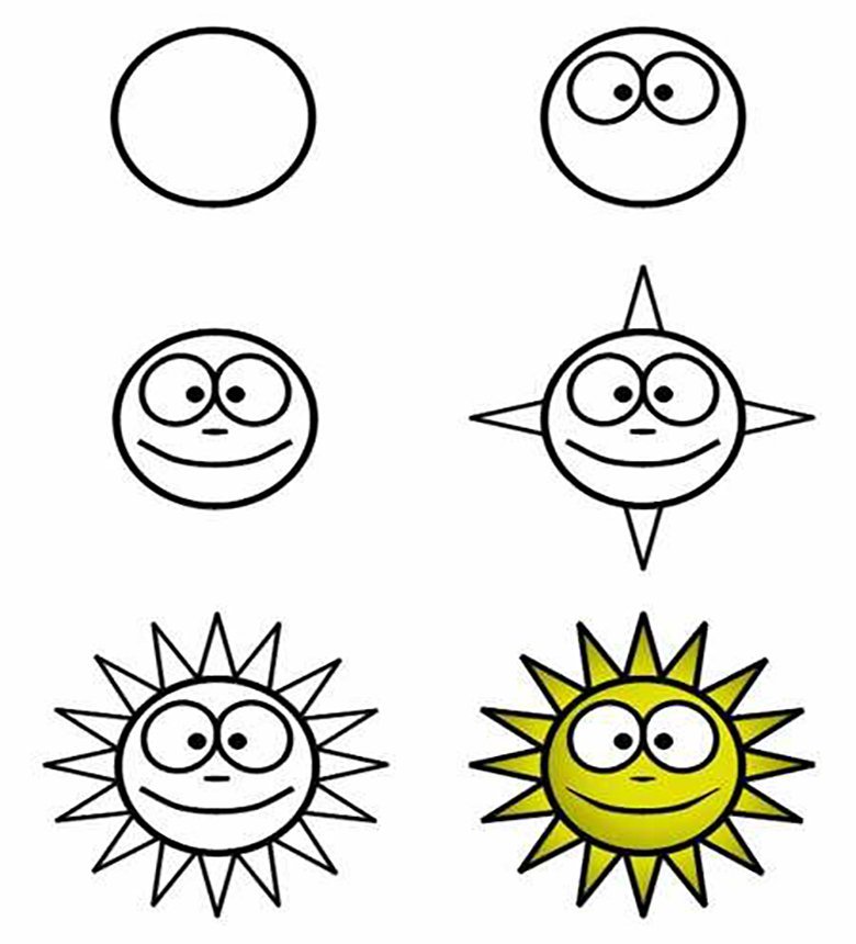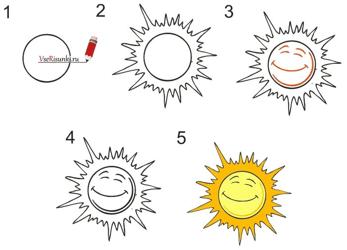 Схема рисования солнца для детей